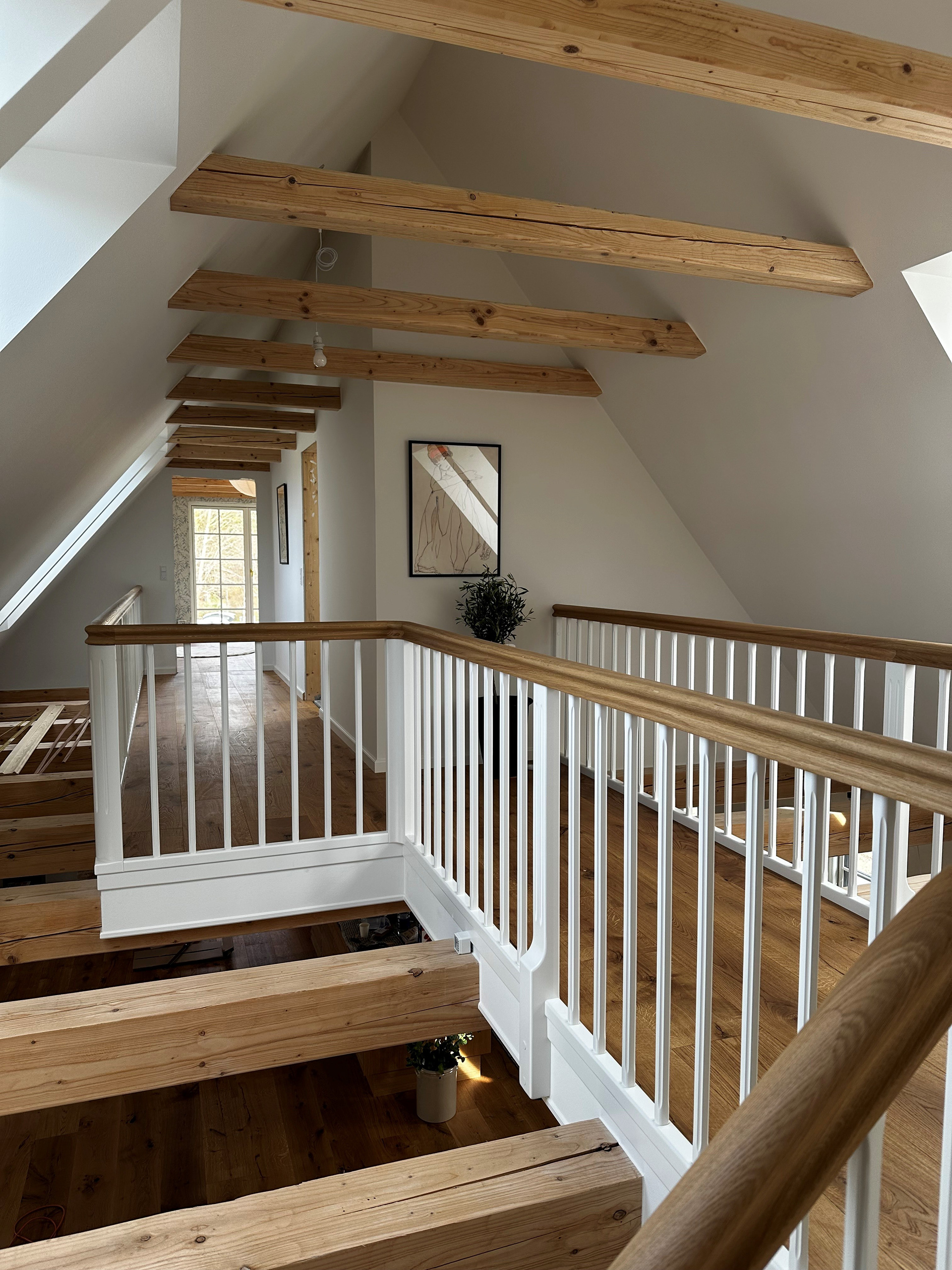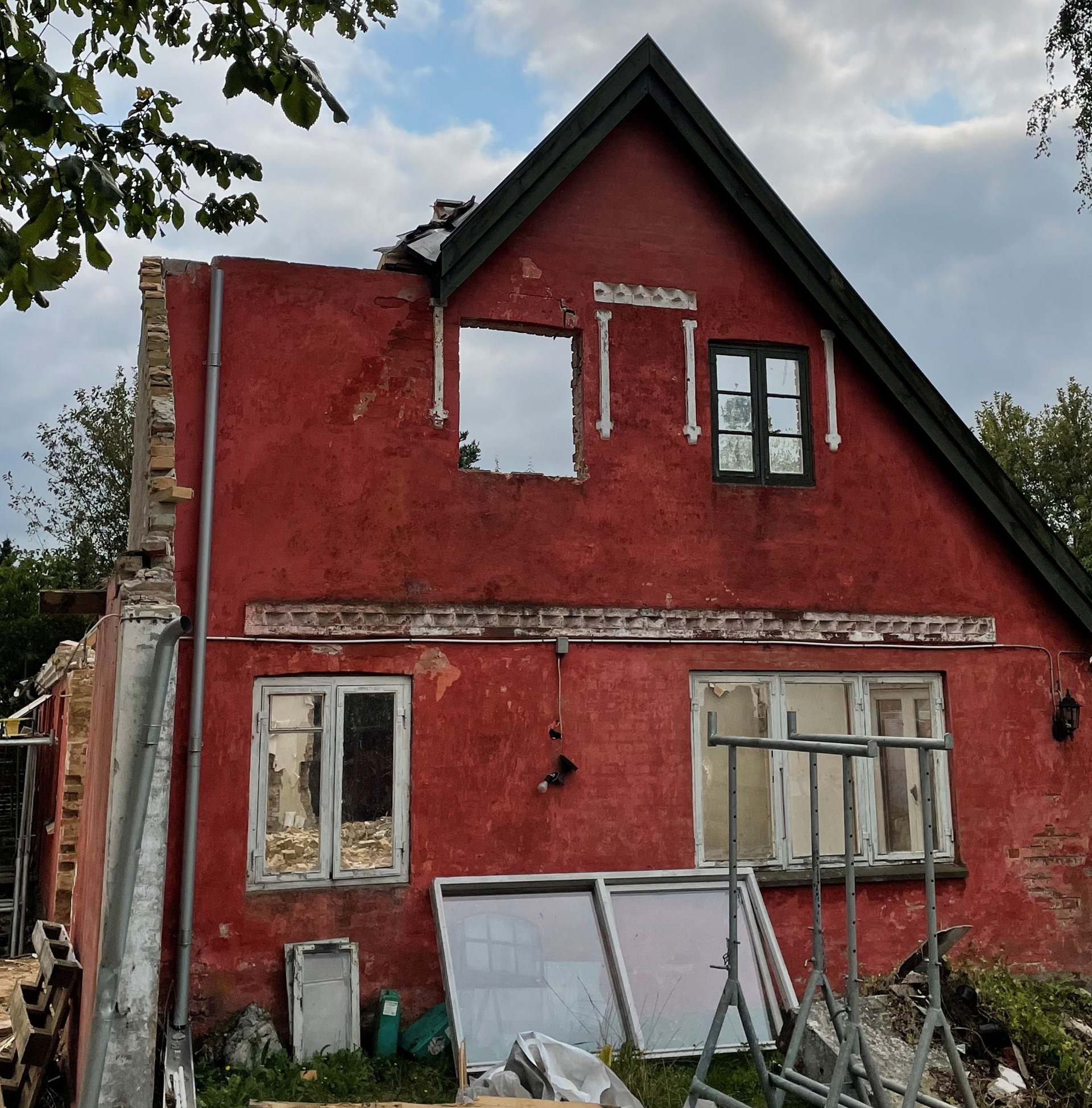 Nyopførelse af sommerhus i historik landhus-stil i lokale og bæredygtige materialer med traditionelle teknikker. Huset er opført i genbrugsmursten fra den oprindelige gård, gesimsbånd og stik med kalkmørtel, og lokalt skovet tømmer fra Gribskov, skåret på det lokale savværk.